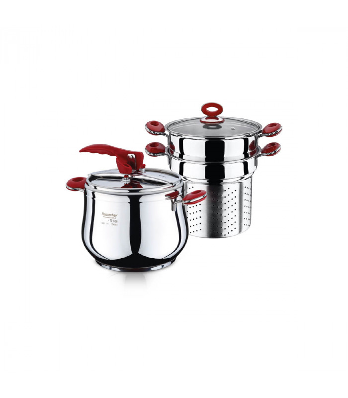 Višenamjenski Praktika set koji se sastoji od tijela ekspres lonca od 7 l, filtera za špagete, posude za kuhanje na pari i staklenog poklopca