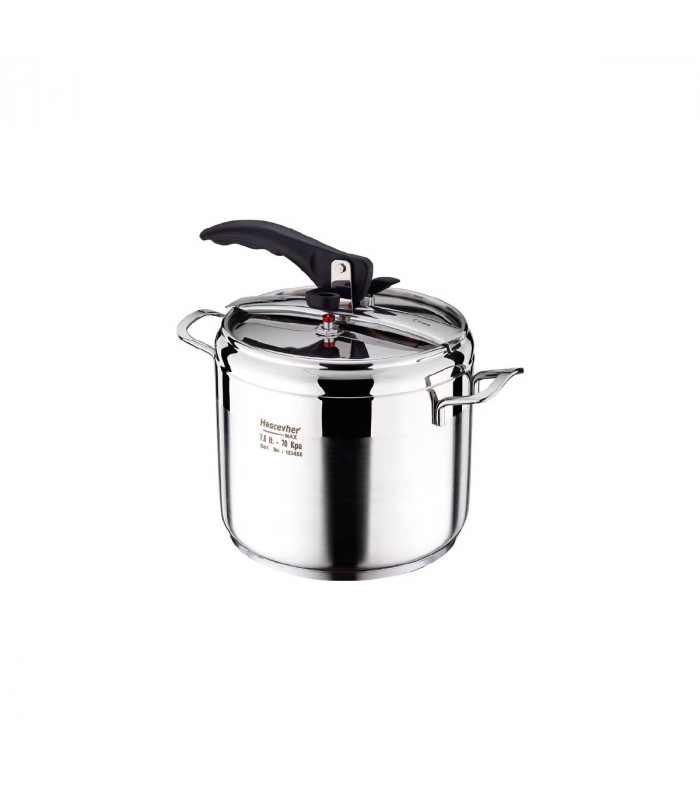 304 Kvaliteta 18/10 Cr.Ni. Tijelo od nehrđajućeg čelika Poklopac ekspres lonca sa sigurnosnim sustavom u 3 stupnja Metalne bočne ručke za vizualni integritet Vanjske površine sa satenskom završnom obradom Indukcijsko dno za korištenje u svim vrstama peći Boja Offset Box