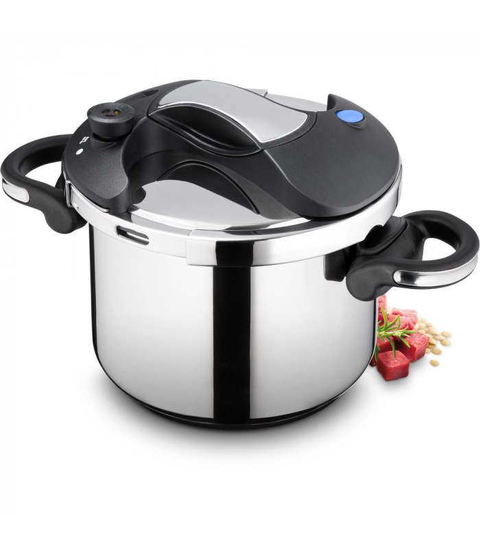 Ekspres lonac opremljen je pokazivačem tlaka, sigurnosnim ventilom, sigurnosnim čepom u slučaju prekomjernog tlaka i krupnim ručkama za jednostavno rukovanje koje Vas neće opeći.