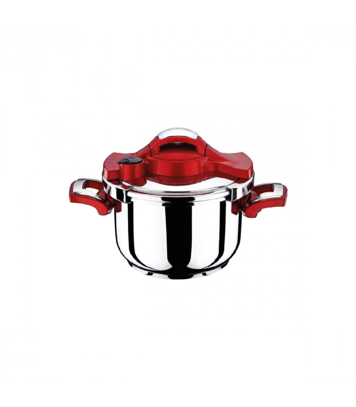 304 Kvaliteta 18/10 Cr.Ni. Tijelo od nehrđajućeg čelika Poklopac Galaxy Matic sa sustavom zaključavanja poklopca u 4 točke Bakalitne bočne ručke za vizualni integritet Polirane vanjske površine koje su pažljivo polirane Indukcijsko dno za korištenje u svim vrstama peći Boja Offset Box