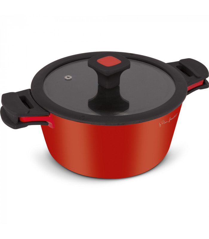 • Lonac ima neprijanjajuću površinu otpornu na grebanje i zagorijevanje, debelo dno i oblikovane ručke sa silikonskom zaštitom.