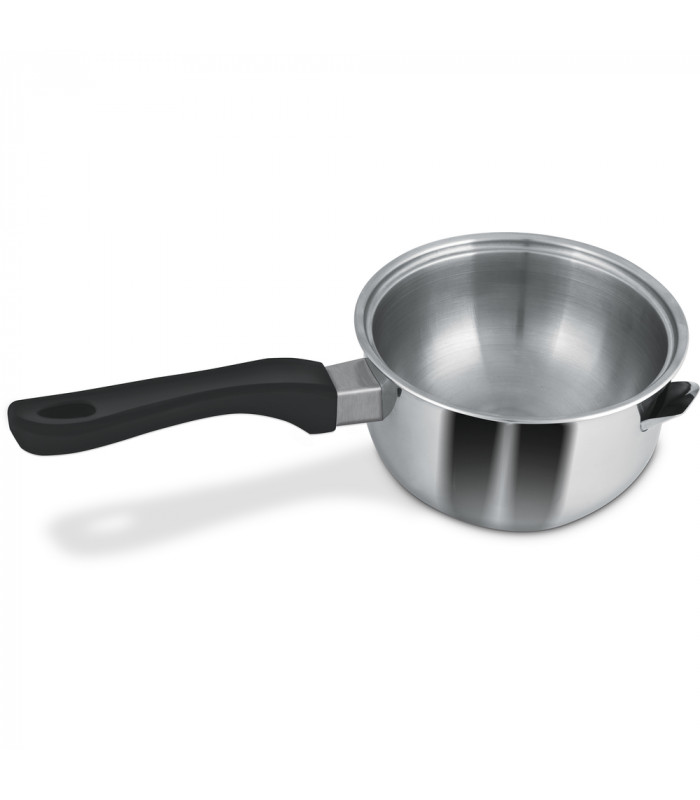 Posuda za umake opremljena je dvostrukim dnom, mekom ručkom s prstenom za vješanje, litarskom skalom i otvorom za ulijevanje vode radi sprječavanja zagorijevanja mlijeka, umaka i čokolade.