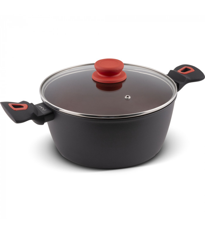 • Lonac ima neprijanjajuću površinu otpornu na grebanje i zagorijevanje, debelo dno i oblikovane ručke sa silikonskom zaštitom.