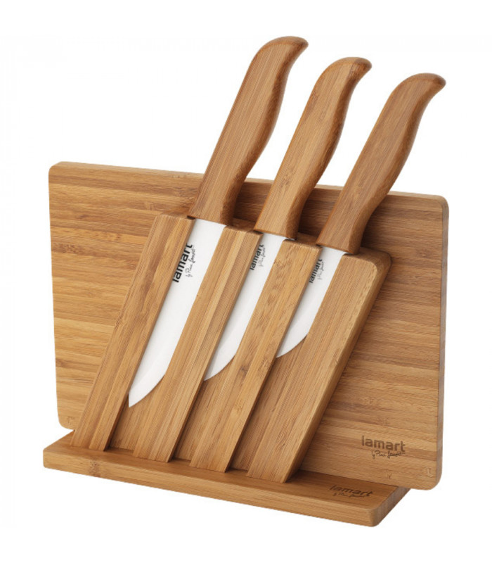 KOMPLET OD 3 NOŽA I DASKA ZA REZANJE OD KERAMIKE BAMBOO